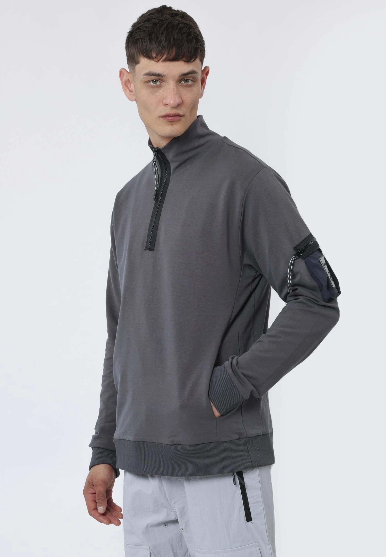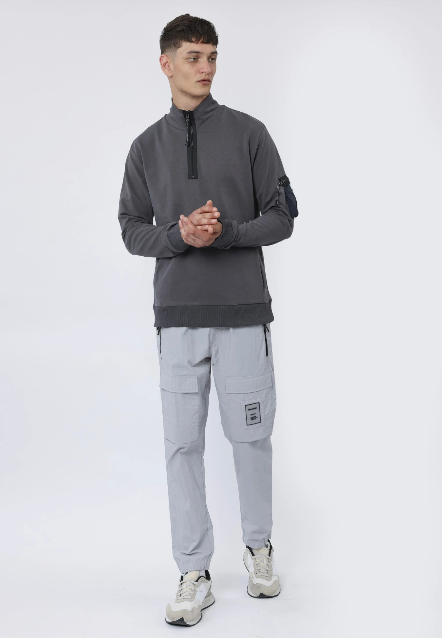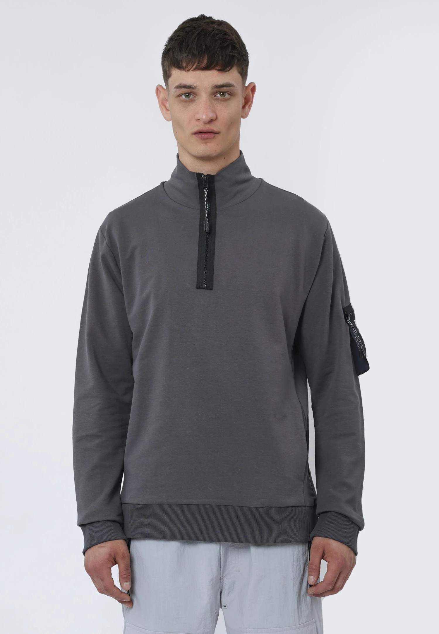 The Bench half zip sweatshirt in the black oyster. Regular fit. Crafted from a soft loop-back sweat. Waterproof rubber half zip closure. 3D arm pocket, with our signature rubber RELIGION badge.