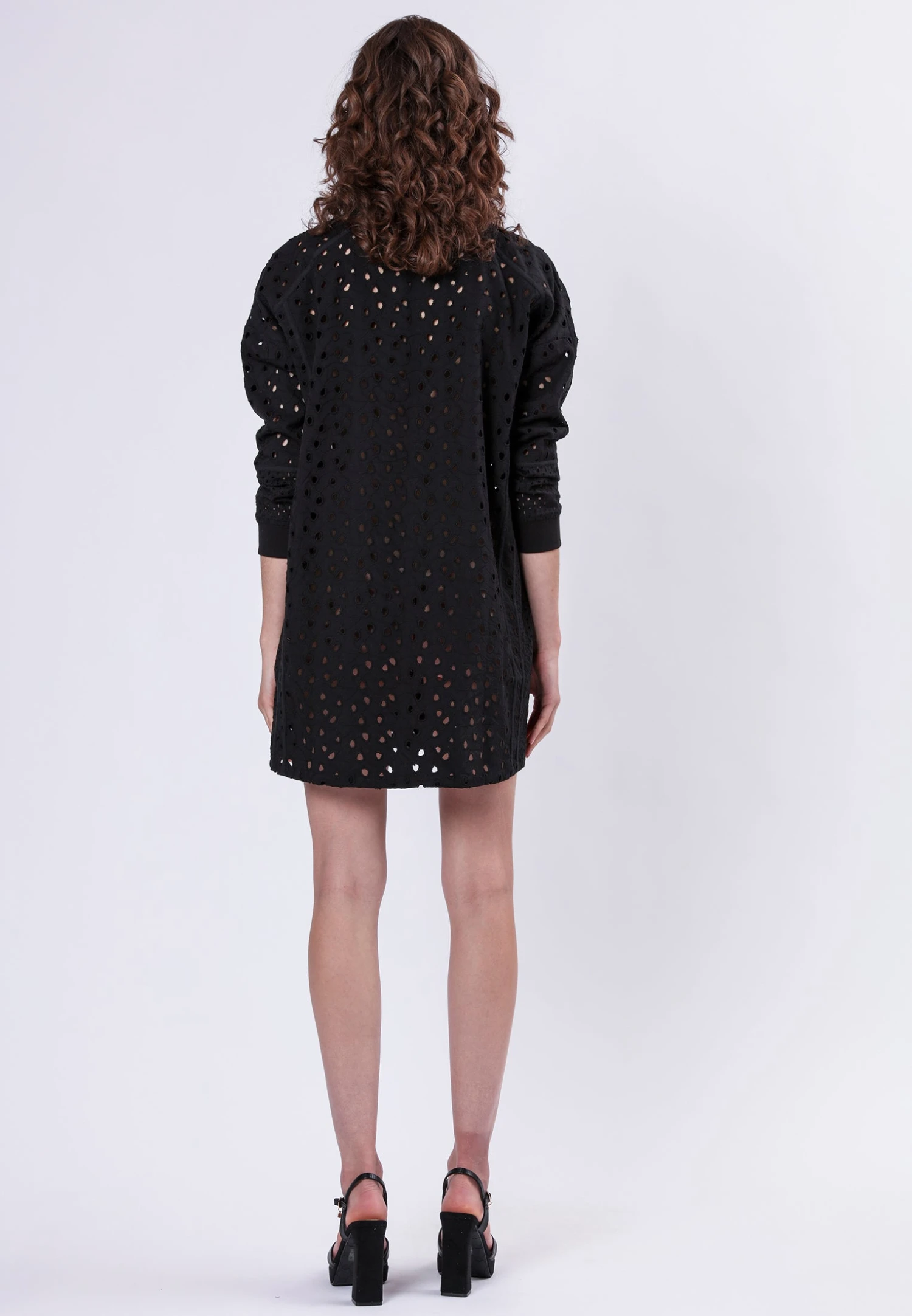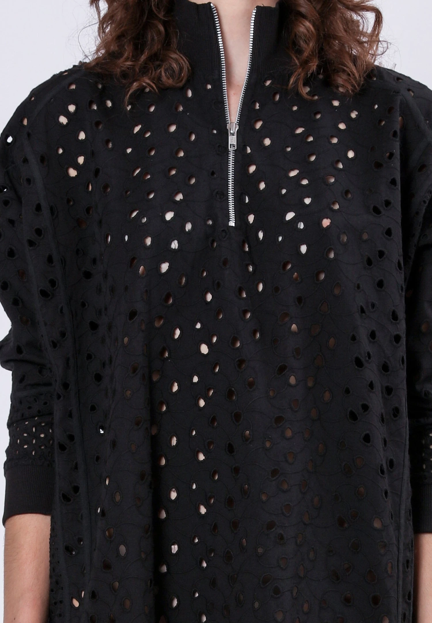 Elevate your wardrobe with this effortlessly cool Coral dress in black, crafted from a cotton broderie anglaise mix. This short dress features a rib neck with zip detail, adding a touch of modern flair to its classic design. Practical pockets and ribbed cuffs enhance its casual yet stylish appeal, making it a versatile piece that can be dressed up or down for any occasion. Whether you’re heading out for a day of errands or a night out with friends, this dress is your perfect go-to for a chic and comfortable look. The model wears a size S. Length from the top: 87 cm