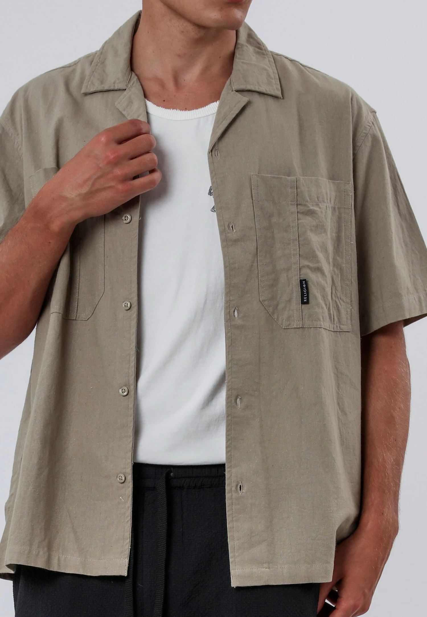 The Corps Shirt in light khaki features a regular fit and is crafted from a premium linen blend for lightweight comfort. This button-up, short-sleeve design with a classic collar is effortlessly versatile, looking great worn solo or styled open over a vest or t-shirt for a laid-back, layered look.