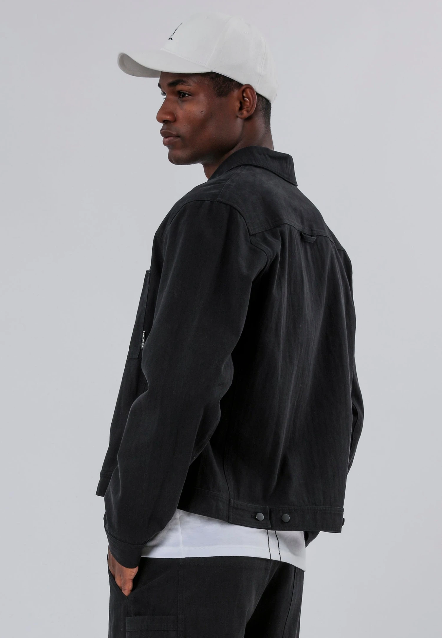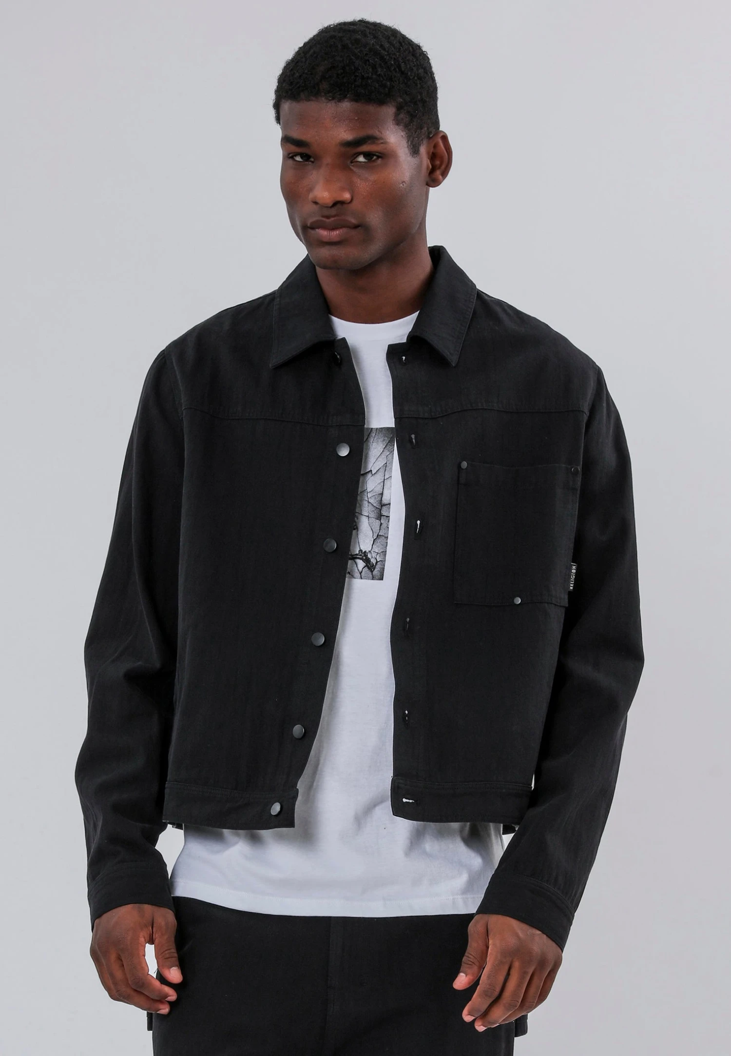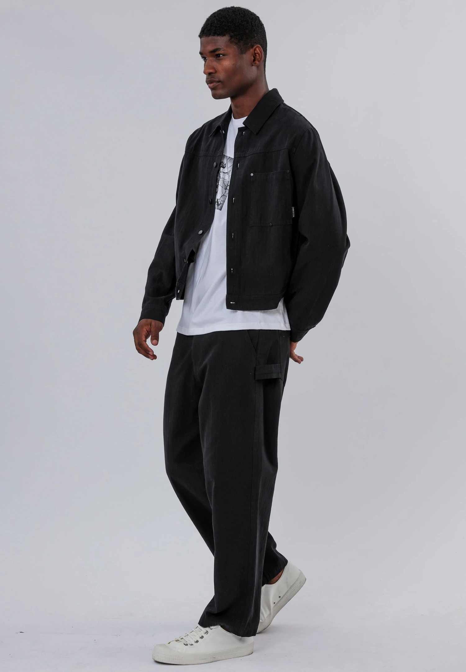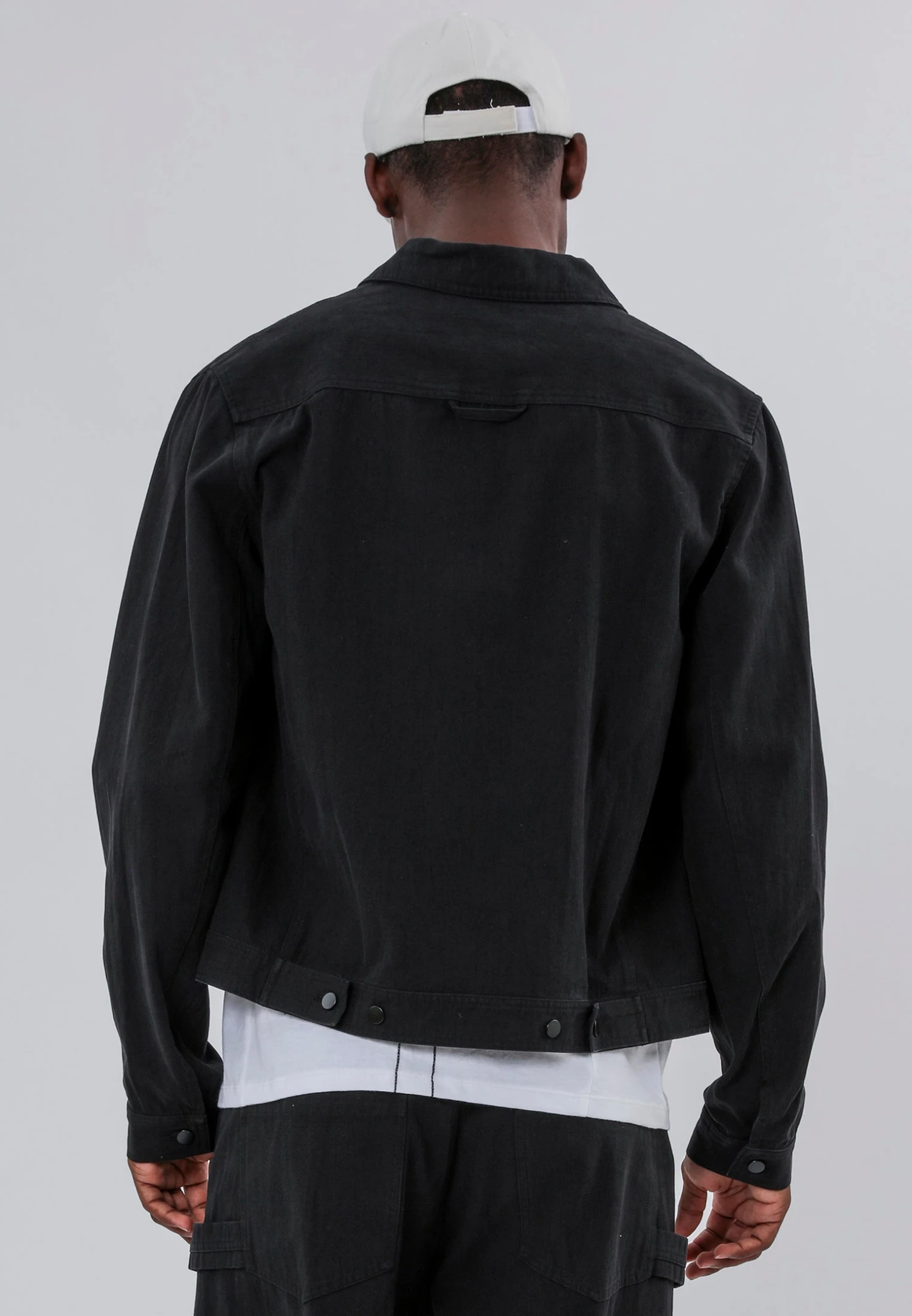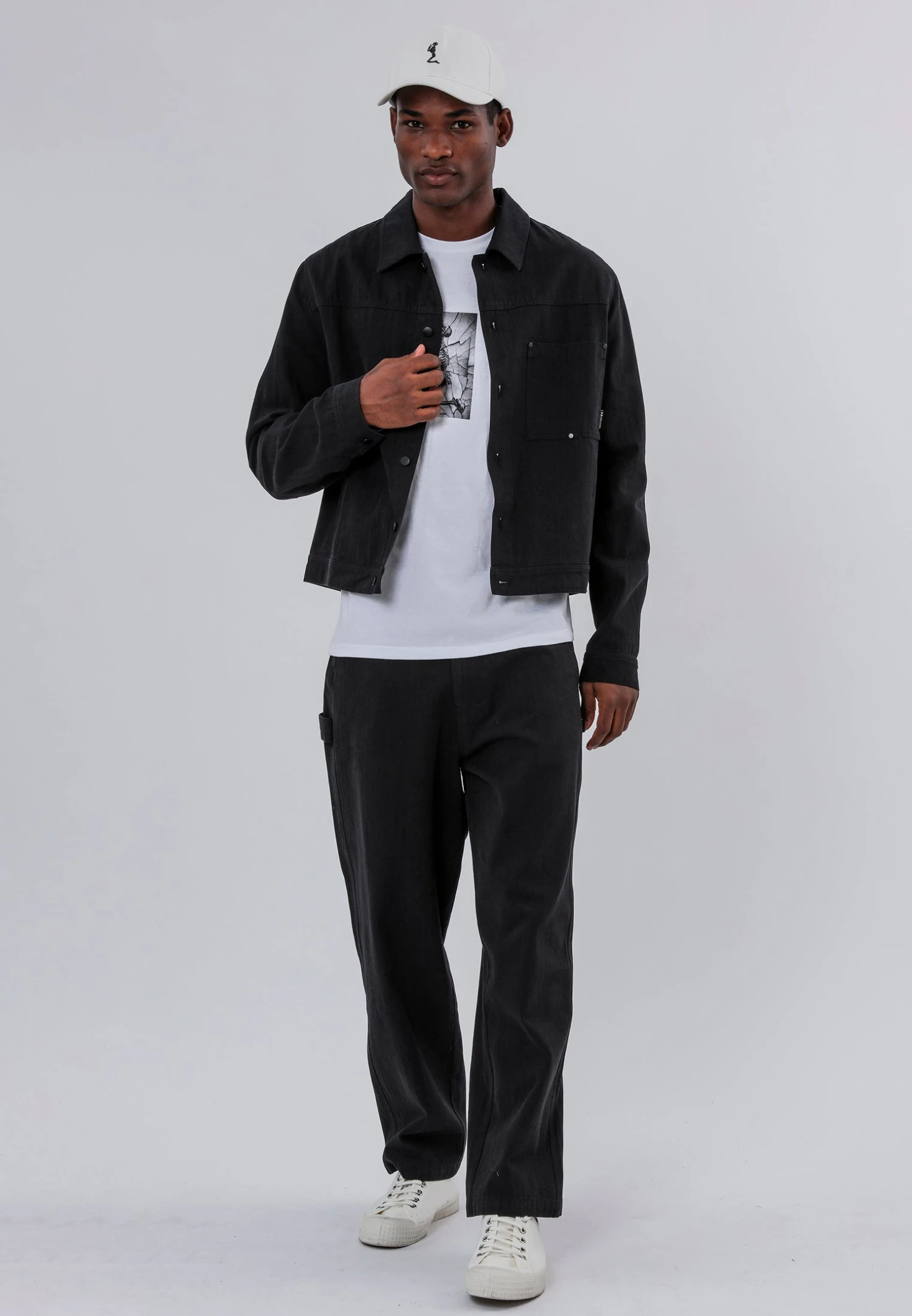 Complete your look with the Denim Jacket in black. Designed in a stylish boxy fit, it features riveted chest pockets and adjustable waistband tabs, letting you customise the fit for effortless comfort. With the addition of convenient side jet pockets, it’s a timeless piece that works for any occasion.