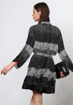 Elevate your style with the Division Kaftan, a dazzling sequin kaftan in a gunmetal shade, accented with a striking black belt and neckline. It’s lined for extra comfort, with a hip-length and oversized design that exudes effortless sophistication. This versatile piece is perfect for seamlessly transitioning from your desk to a dinner outing. For a coordinated and chic look, pair it with our matching Division trousers and make a bold fashion statement that’s sure to turn heads wherever you go. The model wears a size S. Please go down 1 size if you like it better less oversized. Length: 66 cm