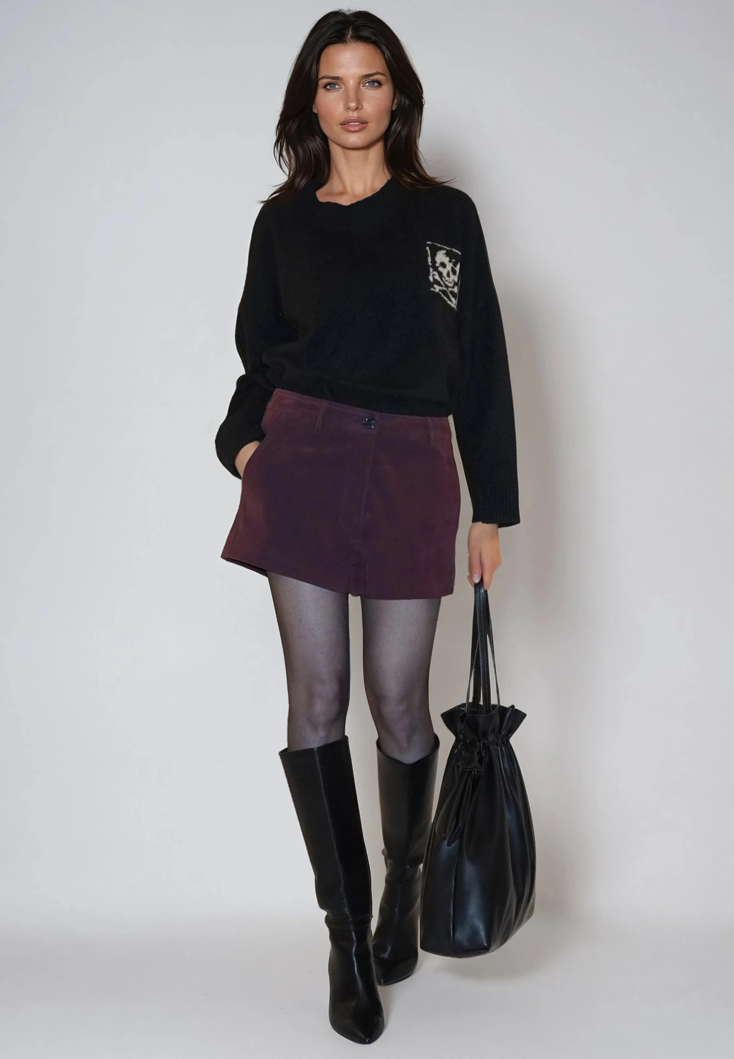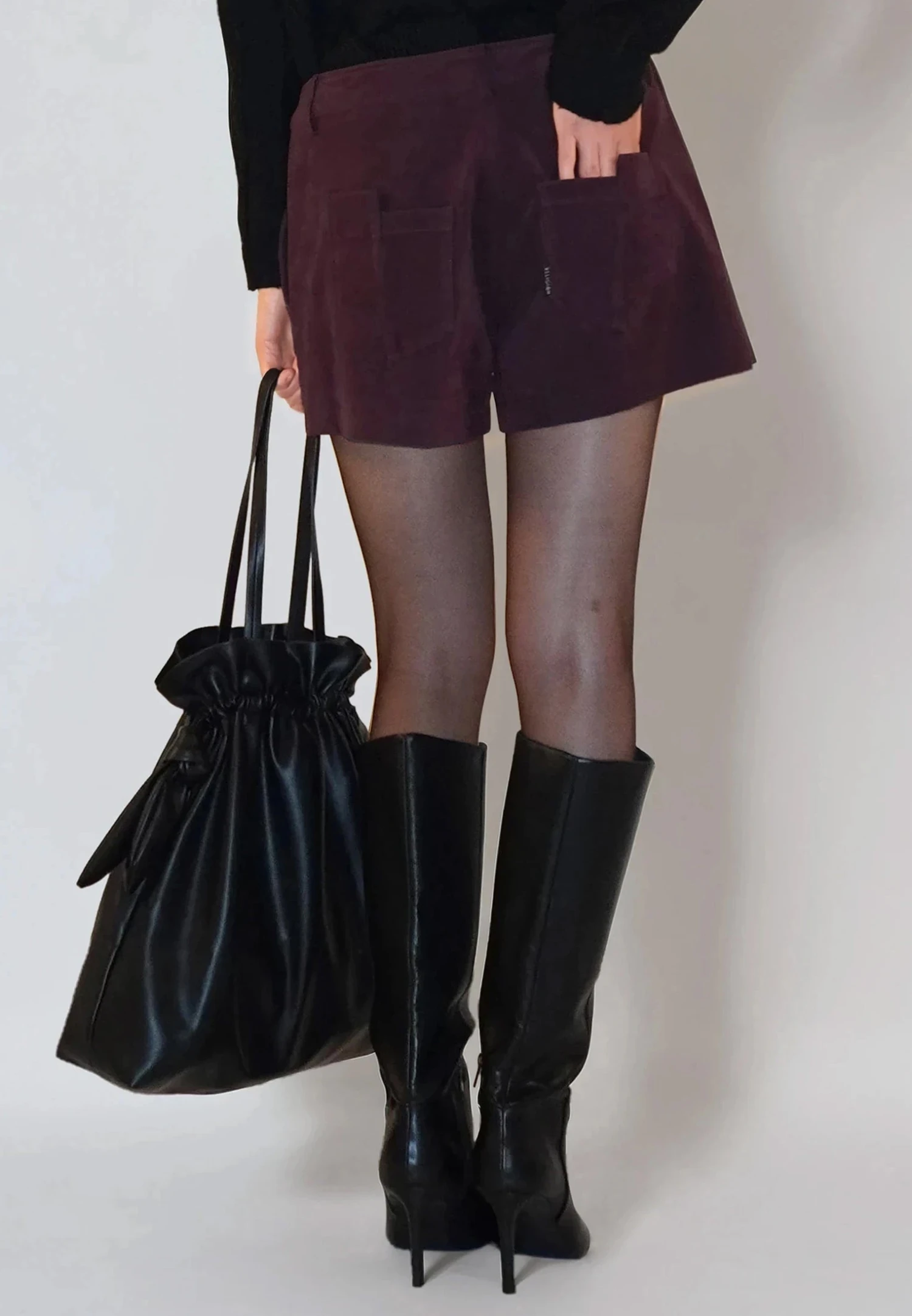 Introducing the Galaxy shorts: stylish faux suede shorts in dark red, designed for versatility and flair. These shorts feature five-pocket detailing and a fly zip, with unique mismatched back pockets that add a distinctive touch. Perfect for any season, you can pair them with sandals and a T-shirt for a laid-back summer look, or with tights, heels, and a jumper for a chic winter outfit. The Orbit Shorts are your go-to choice for a fashionable, year-round wardrobe staple. The model wears a size 10. Inseam length: 6 cm