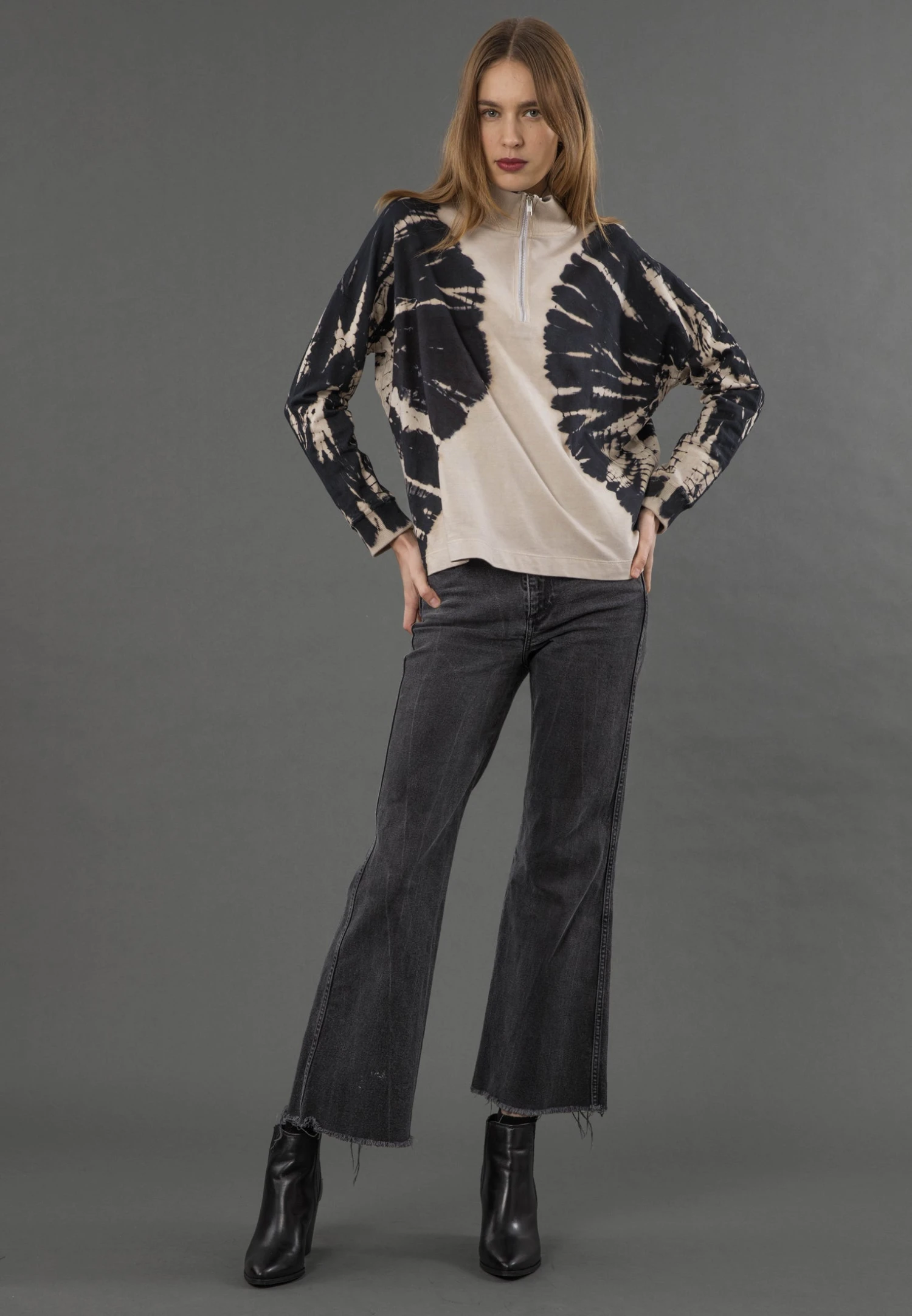 The Jade sweat is a chic and versatile addition to your casual wardrobe. Crafted from soft cotton, this sweat jumper offers both comfort and style. The rib neckline features a trendy zip detail, adding a modern touch to the classic design. Adorned in a striking tie-dye pattern in taupe tones, it brings a bold and contemporary vibe to any outfit. With its hip-length silhouette, long sleeves and relaxed fit, the Jade sweat is perfect for effortless layering. Dress it up with tailored trousers and statement jewellery for a polished look, or keep it casual with jeans and sneakers for a laid-back vibe. The model wears a size S. Length from the top: 62 cm. Dry clean only