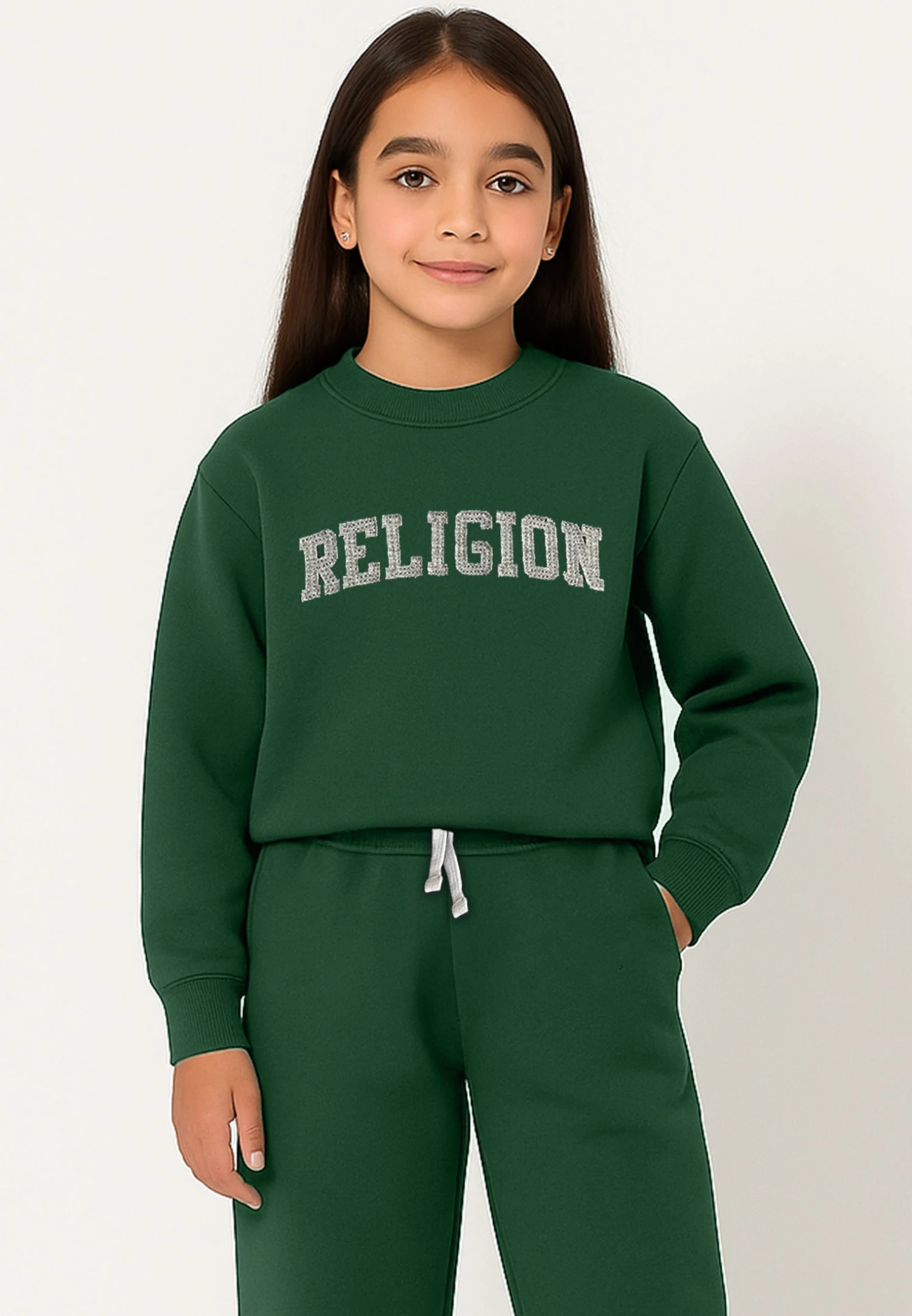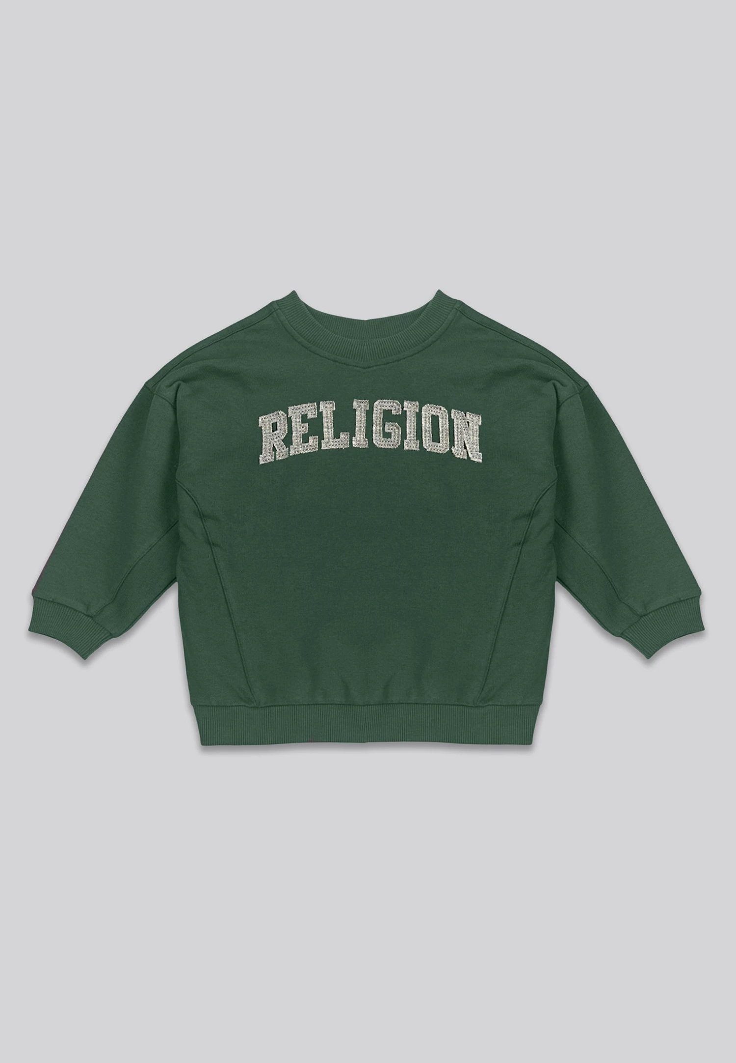 Keep your little one comfy and stylish with our RELIGION Oversized Sweatshirt in Green. Made from 100% soft cotton, it’s perfect for all-day wear, keeping them cosy while on the move or relaxing at home. Designed with an oversized fit, this sweatshirt gives plenty of room to play. Featuring our cool RELIGION curved applique on the front, it’s a standout piece for any mini trendsetter. Complete with a crew neckline, along with ribbed cuffs and hem. Ideal for playtime, lounging or exploring in style. Why not pair it with the matching pants for ultimate cosiness.