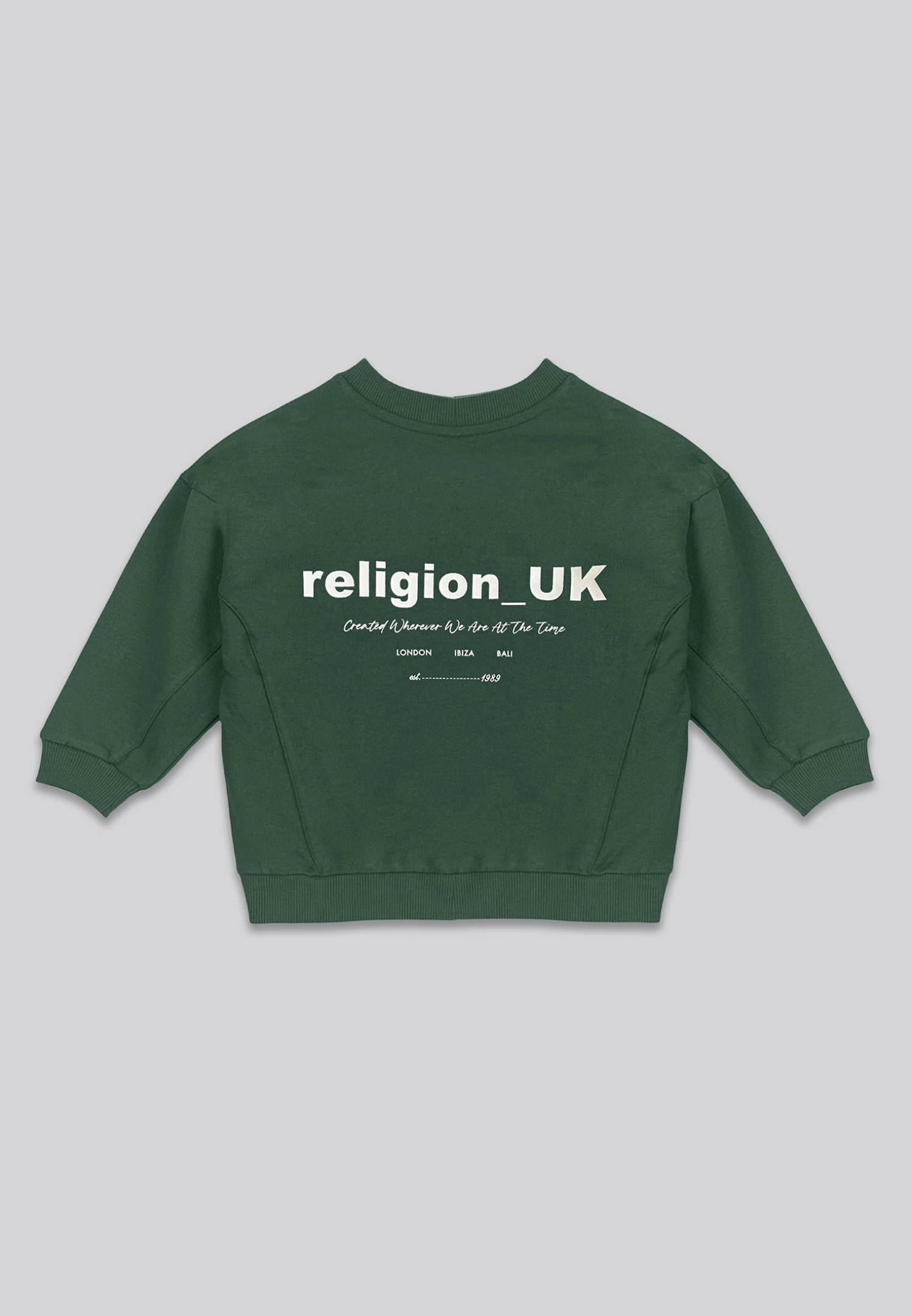 Keep your little one comfy and stylish with our RELIGION Oversized Sweatshirt in green. Made from 100% soft cotton, it’s perfect for all-day wear, keeping them cosy while on the move or relaxing at home. Designed with an oversized fit, this sweatshirt gives plenty of room to play. Featuring our RELIGION tour injection print across the back, it’s a standout piece for any mini trendsetter. Complete with a crew neckline, along with ribbed cuffs and hem. Ideal for playtime, lounging or exploring in style.