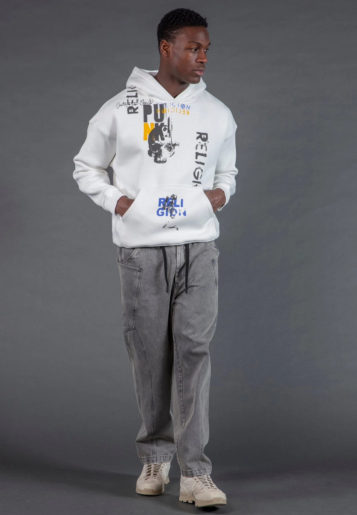 Turn heads in the Punk hoodie in white. Rocking an bold all-over graphic that demands attention. Crafted for max comfort, it features a relaxed fit, a handy kangaroo pocket and an adjustable drawstring hood.
