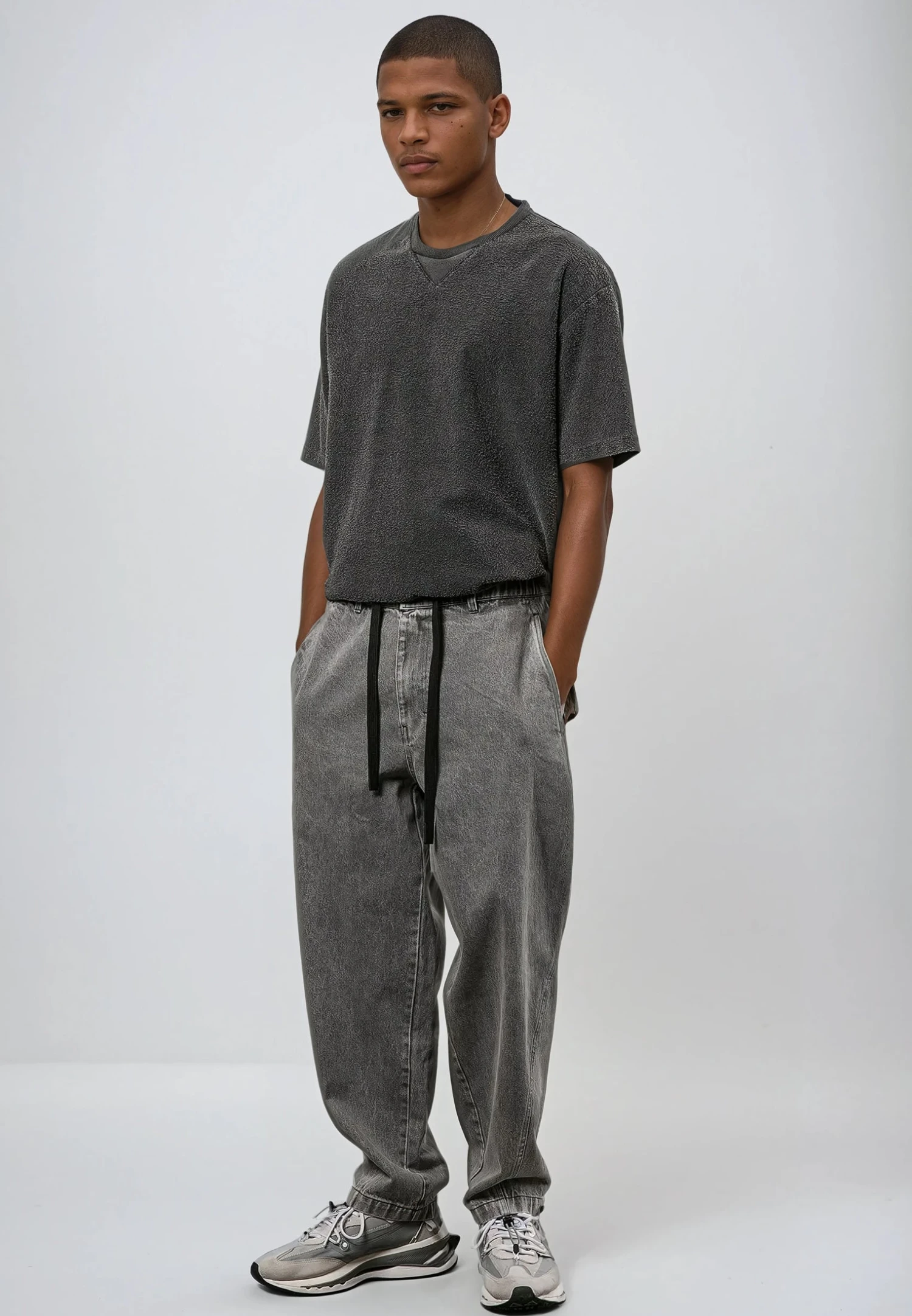 The Quantum Pant in charcoal. Shaped to a relaxed fit washed denim with a drawstring elasticated waist for personalised comfort. With five belt loops and a fly button front, it’s complemented by slanted front pockets adorned with a left-side carpenter tab detail. Complete with our signature RELIGION tab and a unique twisted side seam. These pants are the perfect addition to your everyday wardrobe.