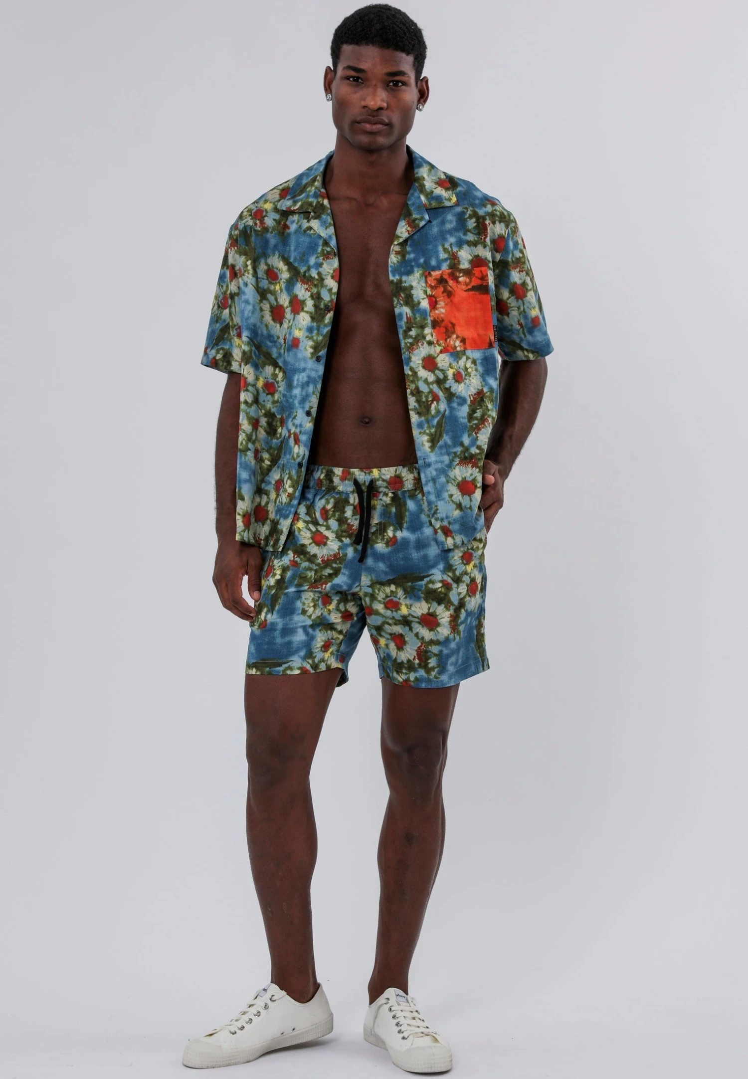 Add a burst of fun to your summer wardrobe with the Trip Shorts. Cut to a comfortable regular fit. Featuring a vibrant tie-dye print and a contrasting colour pocket on the back. Designed with an elasticated drawstring waist for ultimate comfort and adjustability, they also include handy side pockets for added functionality. They look great on their own, or why not pair them with the matching shirt?